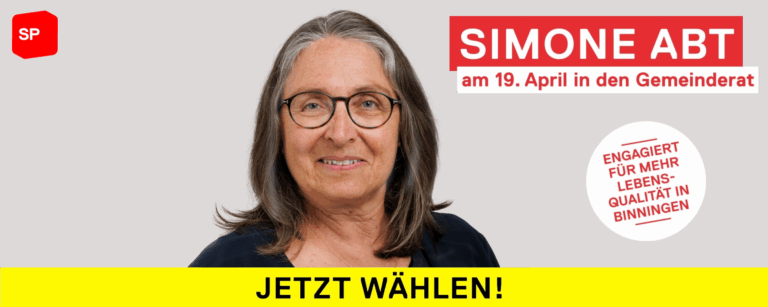 Die SP Binningen bedankt sich bei den Stimmbürgerinnen und -bürgern für das gute Resultat, das unsere Kandidatin Simone Abt im ersten Wahlgang erzielt hat. Wir treten auch im zweiten Wahlgang